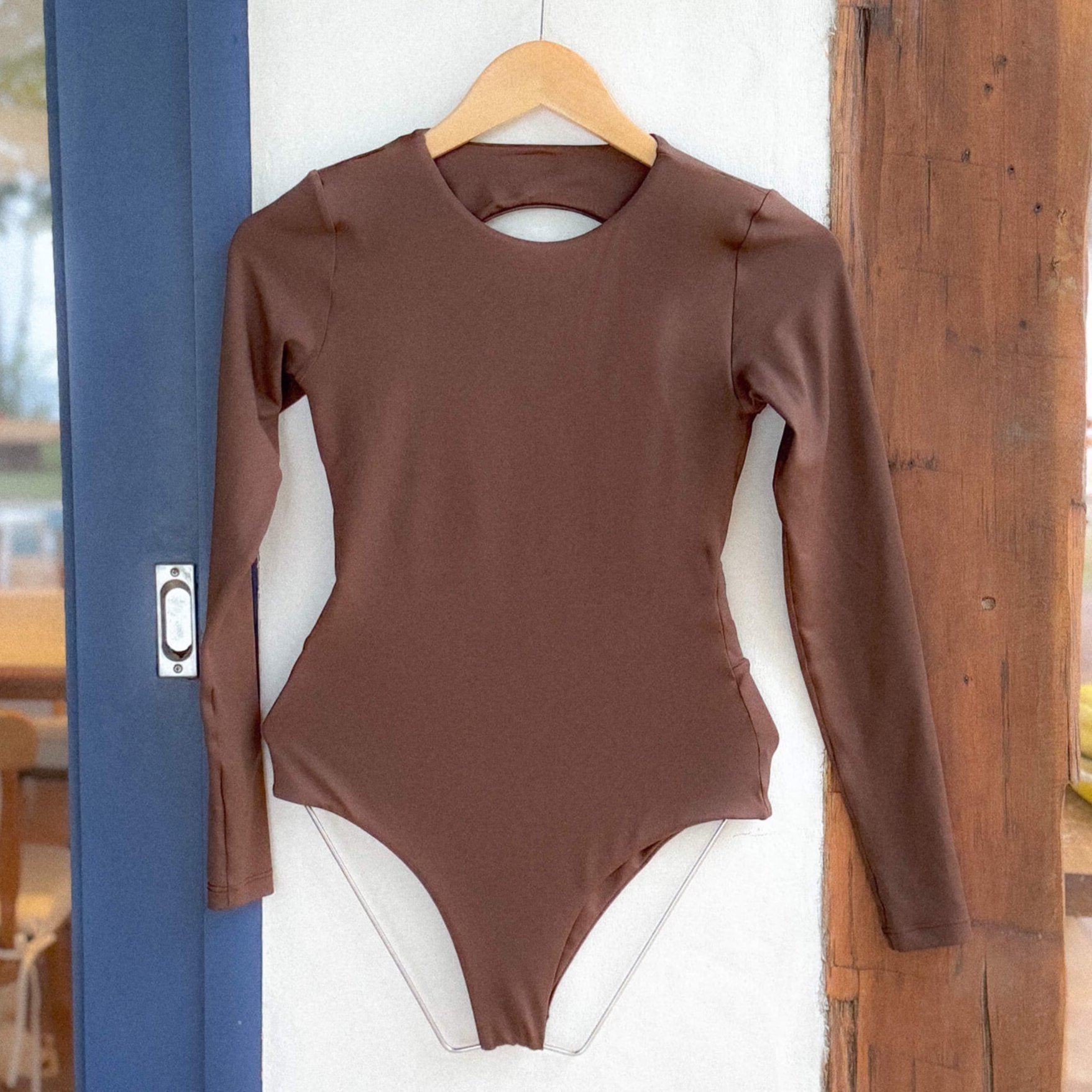 Maio Manga Longa Costas Recorte Marrom