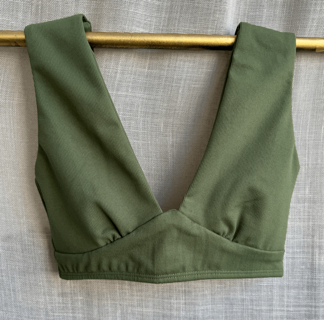 Top com decote em V e alça larga, traz estrutura perfeita para diferentes tamanhos de seio. Decote que valoriza o colo e as costas sem perder sustentação e cobertura.