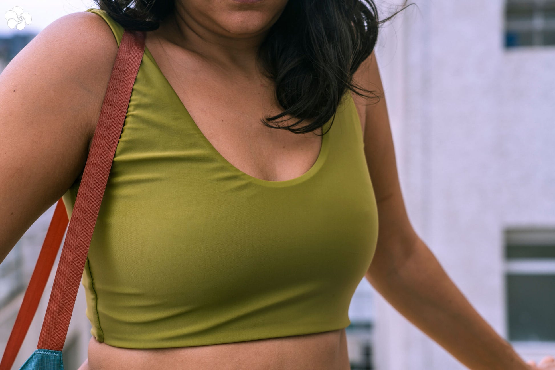 O top desenvolvido à pedido da nossa comunidade: maior cobertura das costas e maior sustentação dos seios. Decote que valoriza o colo e as costas ao máximo sem perder sustentação e cobertura.
